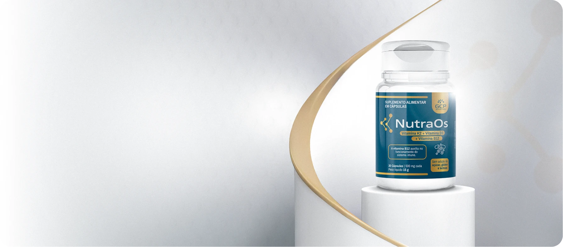 O NutraOs combina vitamina D3, vitamina K2-MK7, magnésio bisglicinato e magnésio malato, em uma fórmula direcionada à saúde óssea, contribuindo para mais estabilidade, previsibilidade e segurança na evolução do tratamento com o uso regular.